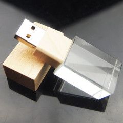 水晶內雕搭竹木蓋精緻隨身碟